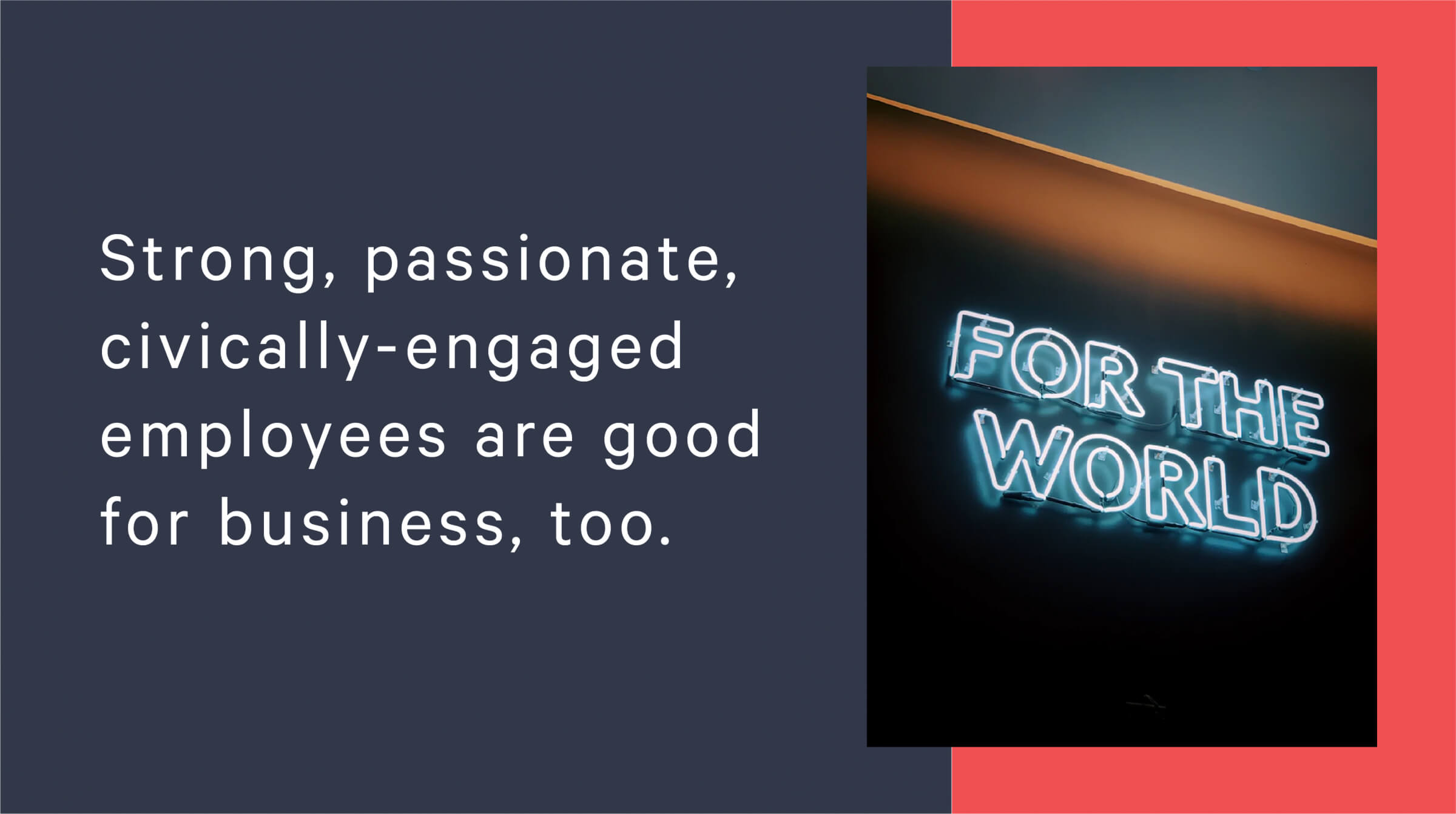 While we agree that the private sector’s job is not to fill the role of policy makers and politicians, we do believe that companies can play a huge role in shifting attitudes and behaviours. Employers can support important change by giving their employees the agency to exercise political and social muscle. Strong, passionate, civically-engaged employees are good for business, too.