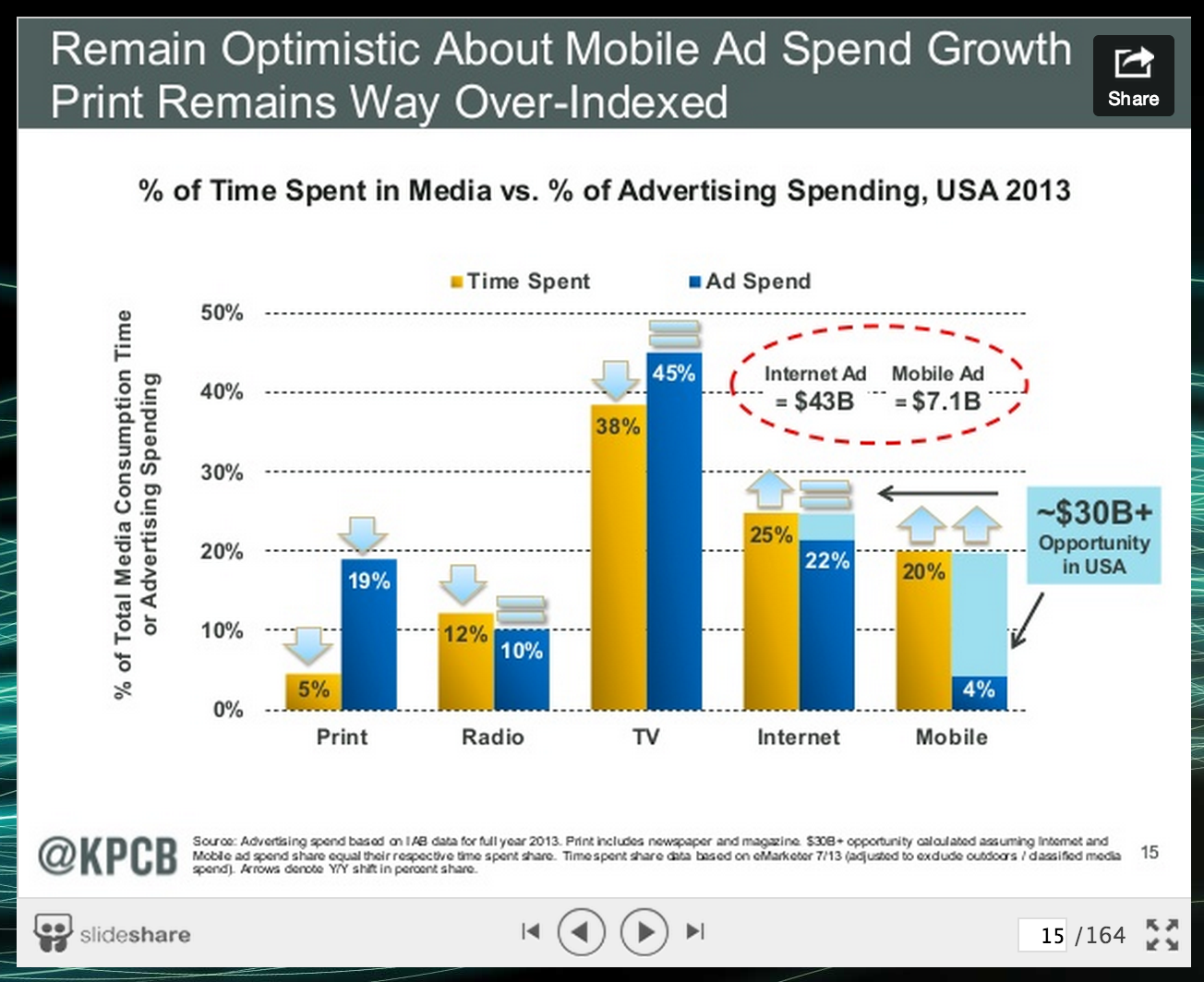 Silicon Valley venture capitalist firm KPCB released its Internet Trends 2014 report last week – all 164 slides of it. You can view the full report here, but we’ve pulled out five key facts that offer lessons for marketing communications agencies and brands that can be applied right now. Have questions about other slides in the report? Feel free to send us a note or comment below.
