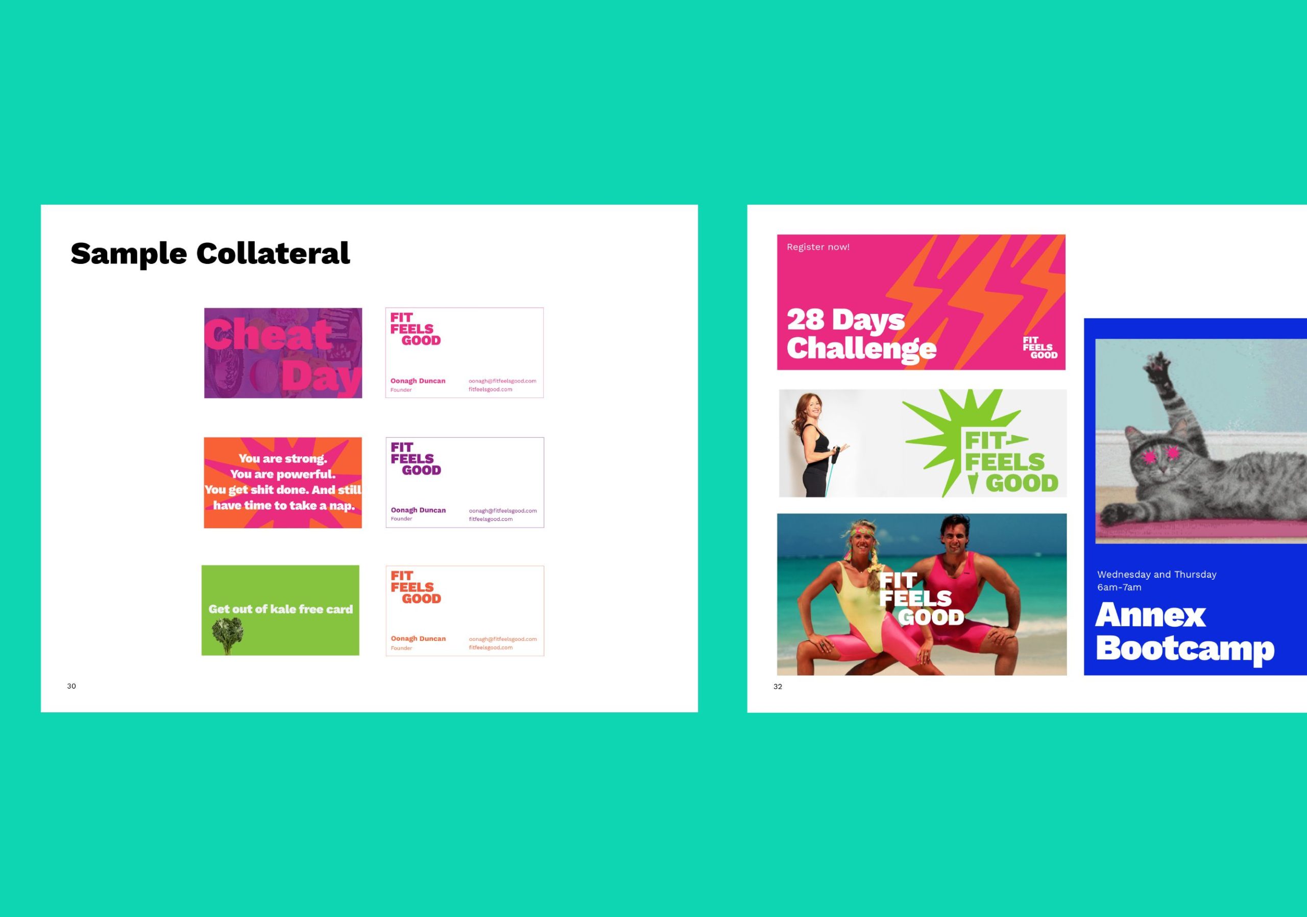A mom and pop fitness empire needed the tools to expand. Fit Feels Good offers numerous programs, all under different banners and identities. Their language was catchy, but there was too much of it. Programs often had multiple names. There was a lack of clarity across the washboard abs. Our job was to tone up their branding and messaging, and create a kick-ass brand that a small organization would be able to run with, despite limited design resources.