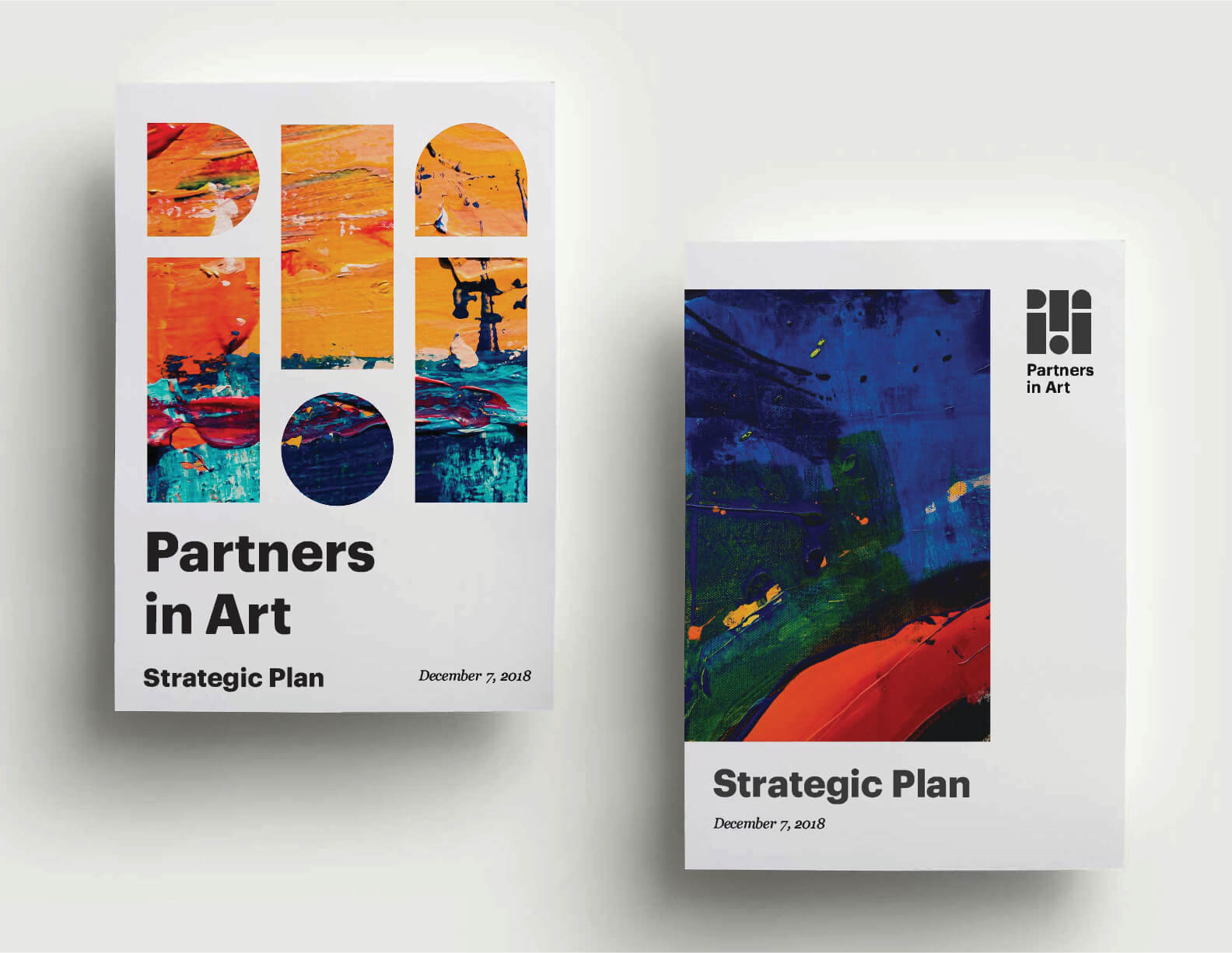 We created a new mark for Partners in Art that speaks to their strength as a member organization that supports bold contemporary art and education. The Partners in Art mark is strong and deliberate without overwhelming the work itself. We also did extensive research into the landscape and logo fields on which Partners in Art would find itself situated to make sure we created a mark that would demand attention.