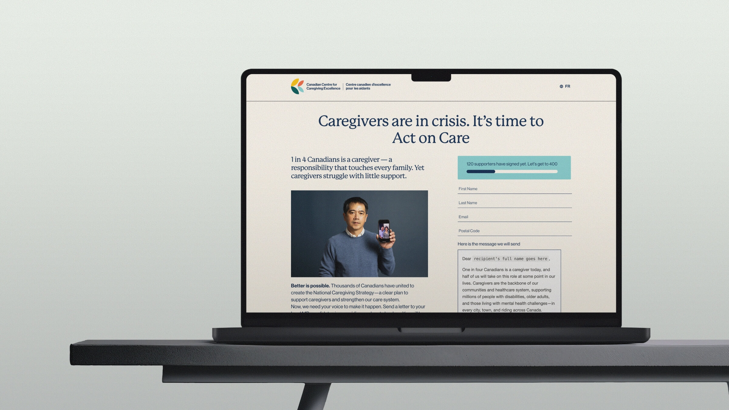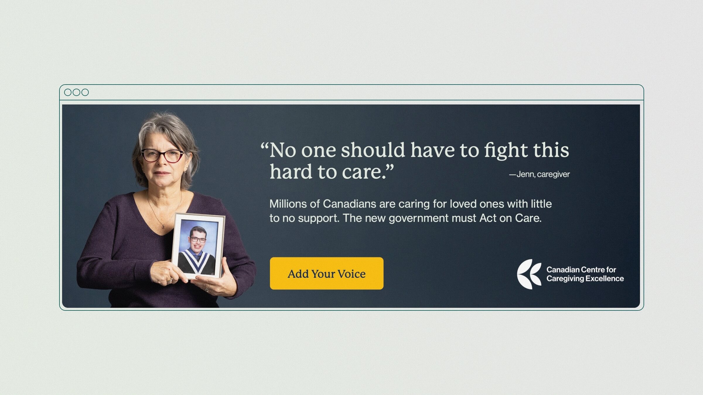 The Canadian Centre for Caregiving Excellence (CCCE) is mandated to elevate caregiving on Canada’s national agenda. Central to the wellbeing of families, workplaces, and communities, caregiving remains undervalued and often invisible — seen as a private issue rather than a shared social and economic priority. With a federal commitment to a National Caregiving Strategy but no clear timeline, CCCE sought to mobilize public support and ensure caregivers’ voices were heard where it mattered most: on Parliament Hill.