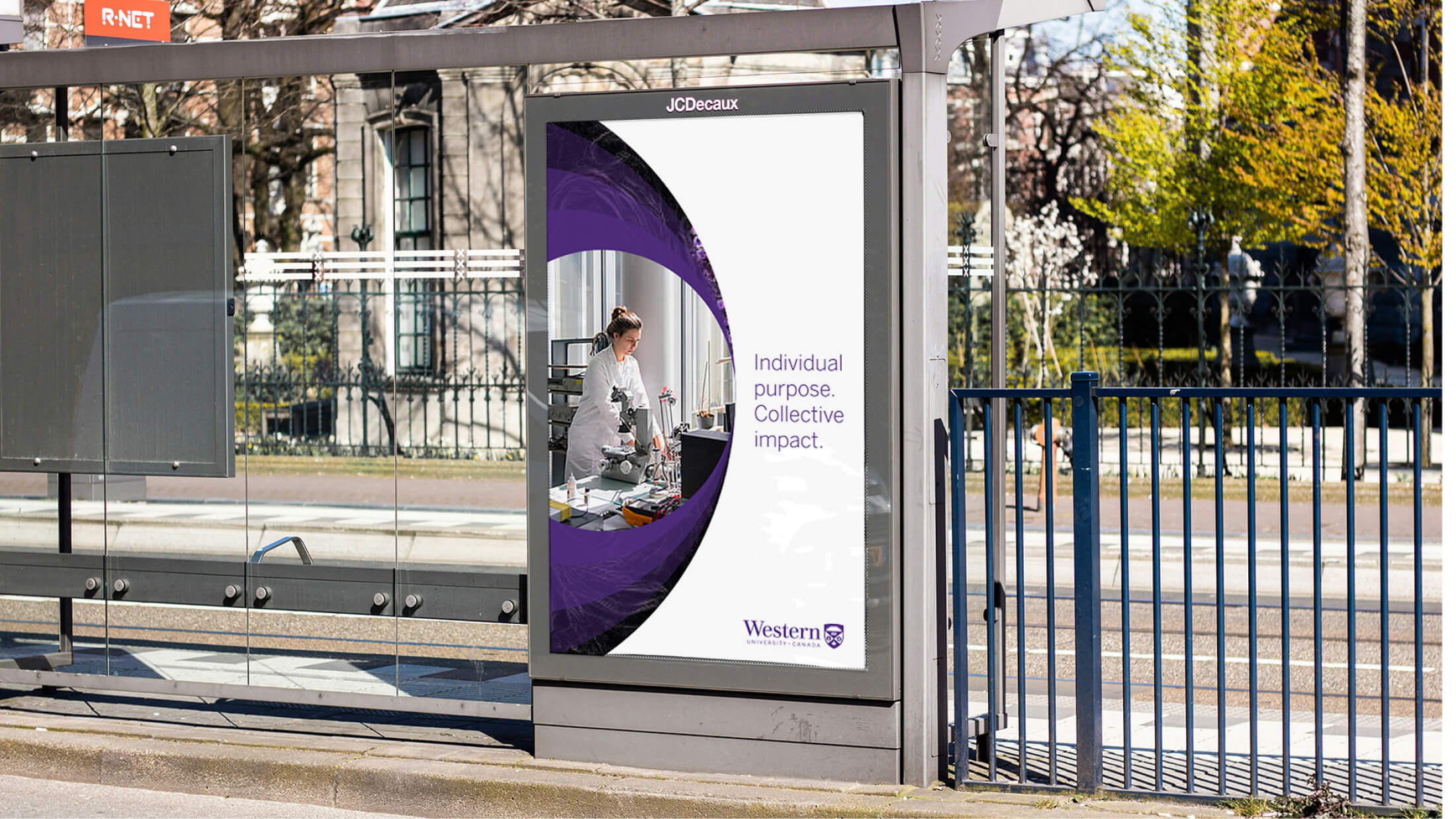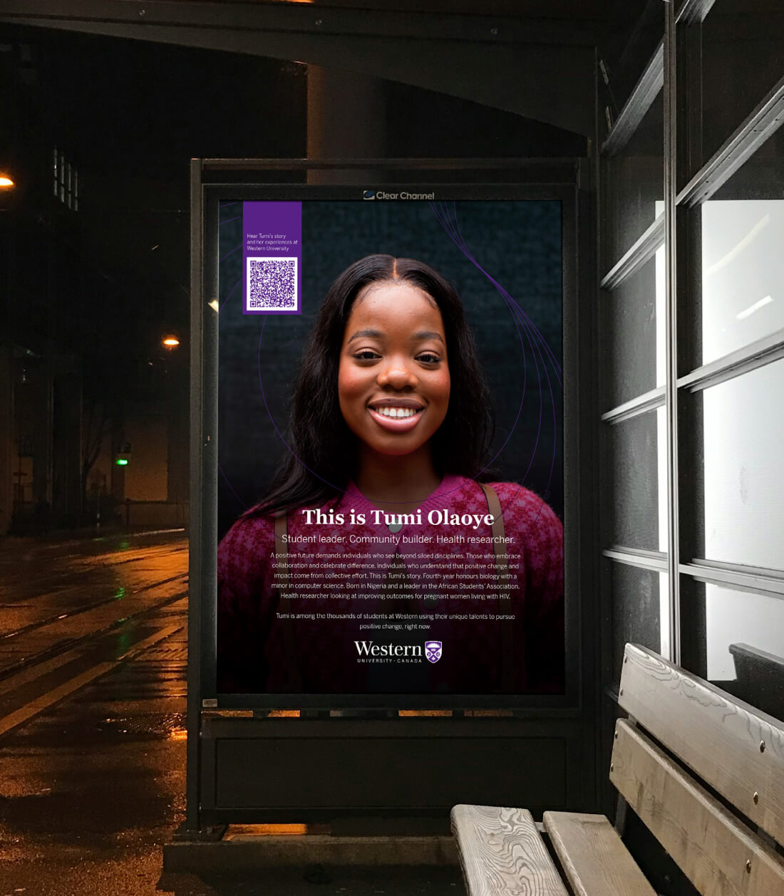 The identity update included a full refresh of the Western identity system that included an expanded colour palette and a new approach to photography and filmmaking. The system focuses on visually expressing the individual and collective impact that Western graduates are making through a flexible set of motifs that tie together across channels.